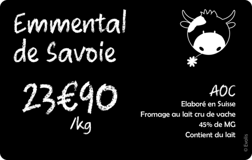 – Un logiciel de création et d’impression d’étiquettes de prix, intuitif et très simple d’utilisation. En quelques clics, mettez à jour votre liste de produits dans un tableau, et affichez les informations pertinentes de manière soignée sur vos étiquettes (allergènes,prix au poids, origine des pièces de viande…). Chaque étiquette de prix peut être adaptée à vos besoins, tant en termes de texte que de présentation visuelle. Différents modèles sont proposés, pour vous guider dans la création : modèle neutre ou aux couleurs de votre enseigne, c’est vous qui choisissez.