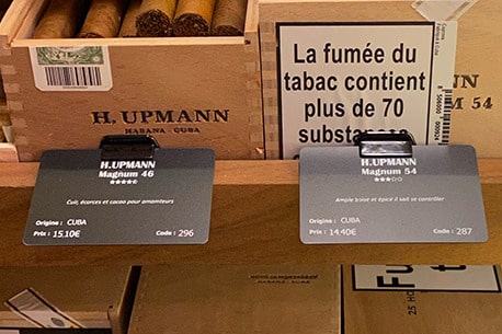 Gleich nach der Installation der Edikio Price Tag Lösung hat die Boutique mehr als 300 Preisschilder in ihrem Humidor angebracht. Sie sind dank eines geeigneten Ständers in der Nähe der Produkte angeordnet.