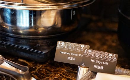 Jedes Buffet-Etikett zeigt die Lebensmittelkategorie, Allergieinformationen und den Namen des Gerichts in Chinesisch und Englisch, um den Anforderungen chinesischer und internationaler Gäste gerecht zu werden. Li Huirong erklärt: „Edikio erfüllt perfekt unsere ästhetischen Standards und Hygienerichtlinien. Das einheitliche und elegante Kartendesign erhöht die Attraktivität unseres Buffets und spiegelt das Image eines Fünf-Sterne-Hotels wider. Die Karten sind wasser- und feuchtigkeitsbeständig, und wir sind äußerst zufrieden mit der Klarheit der angezeigten Informationen.“