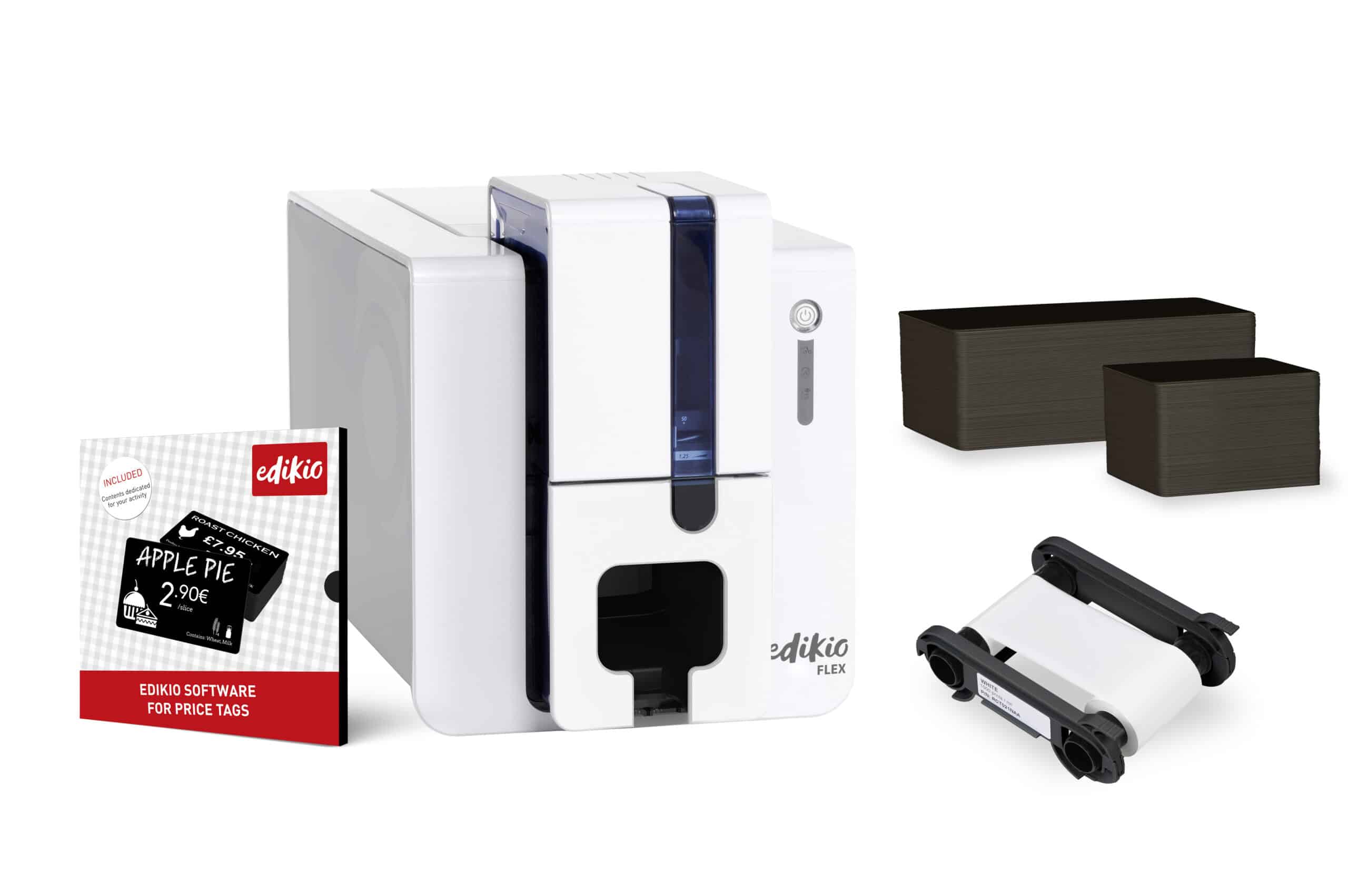Die All-in-One-Lösungen von Edikio bieten alles, was Sie brauchen, um Preisschilder auf Plastikkarten einfach zu personalisieren und zu drucken. Sie bestehen aus :