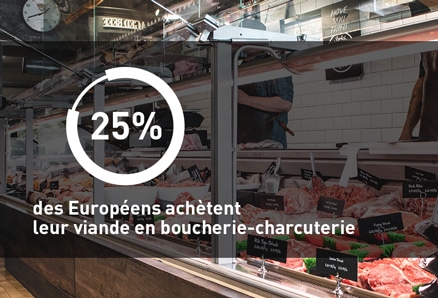 Die Verbrauchertrends rund um das Thema Fleisch haben sich in den letzten Jahren stark verändert. Die zahlreichen Gesundheitskrisen in diesem Sektor haben das Misstrauen der Kunden erhöht, die so viele Informationen wie möglich über die Produkte erhalten möchten, die sie konsumieren, und zwar unabhängig davon, um welches Produkt es sich handelt. 58% der Europäer kaufen Fleisch nach wie vor hauptsächlich in Hyper- und Supermärkten, aber 25% gehen in eine Metzgerei, und diese Zahl steigt weiter an.