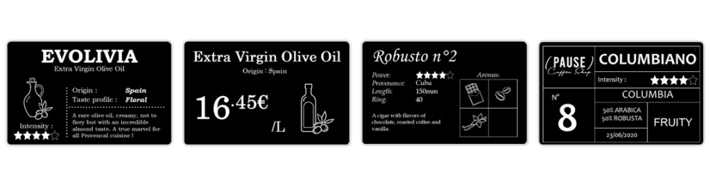 Die Software enthält nun neue Kartenvorlagen für die Produkte Olivenöl, Kaffee oder Zigarren. Sie werden auch von neuen Piktogrammen für Olivenöl und Aromen begleitet.