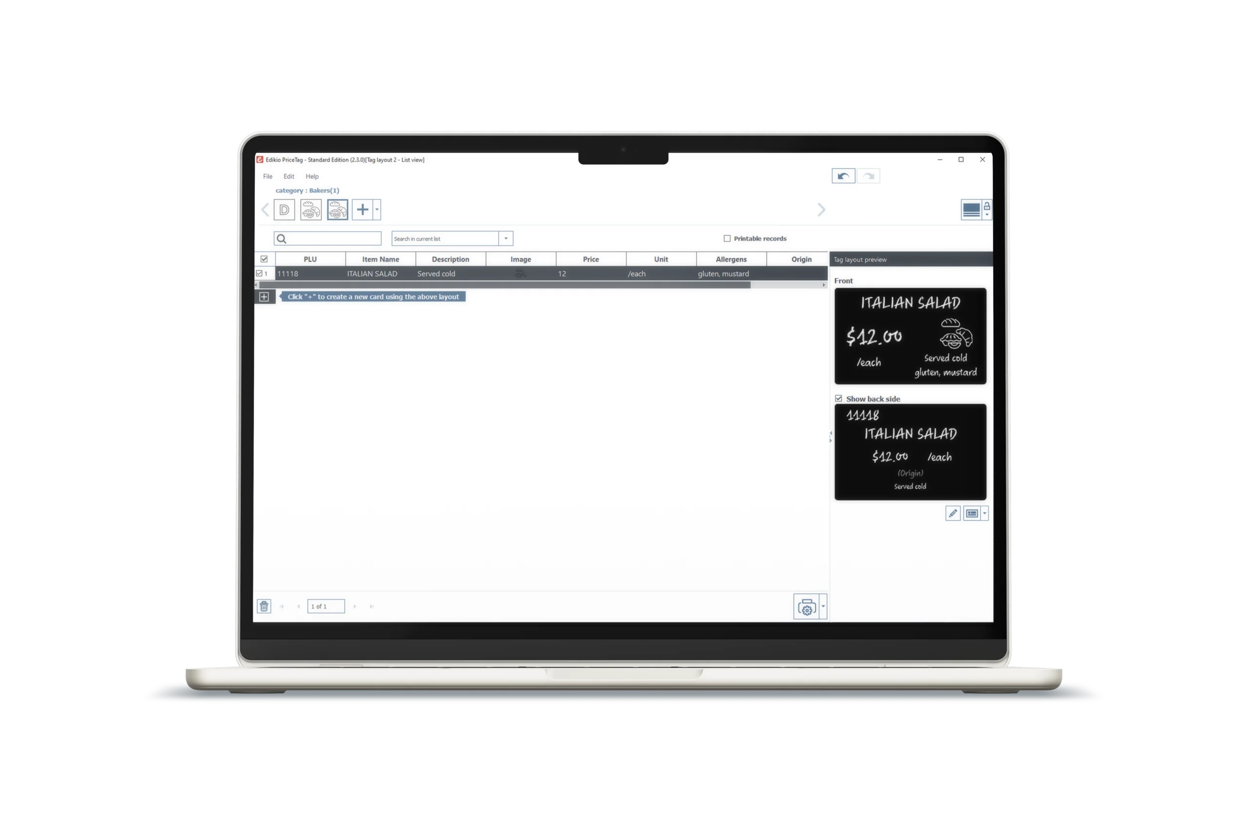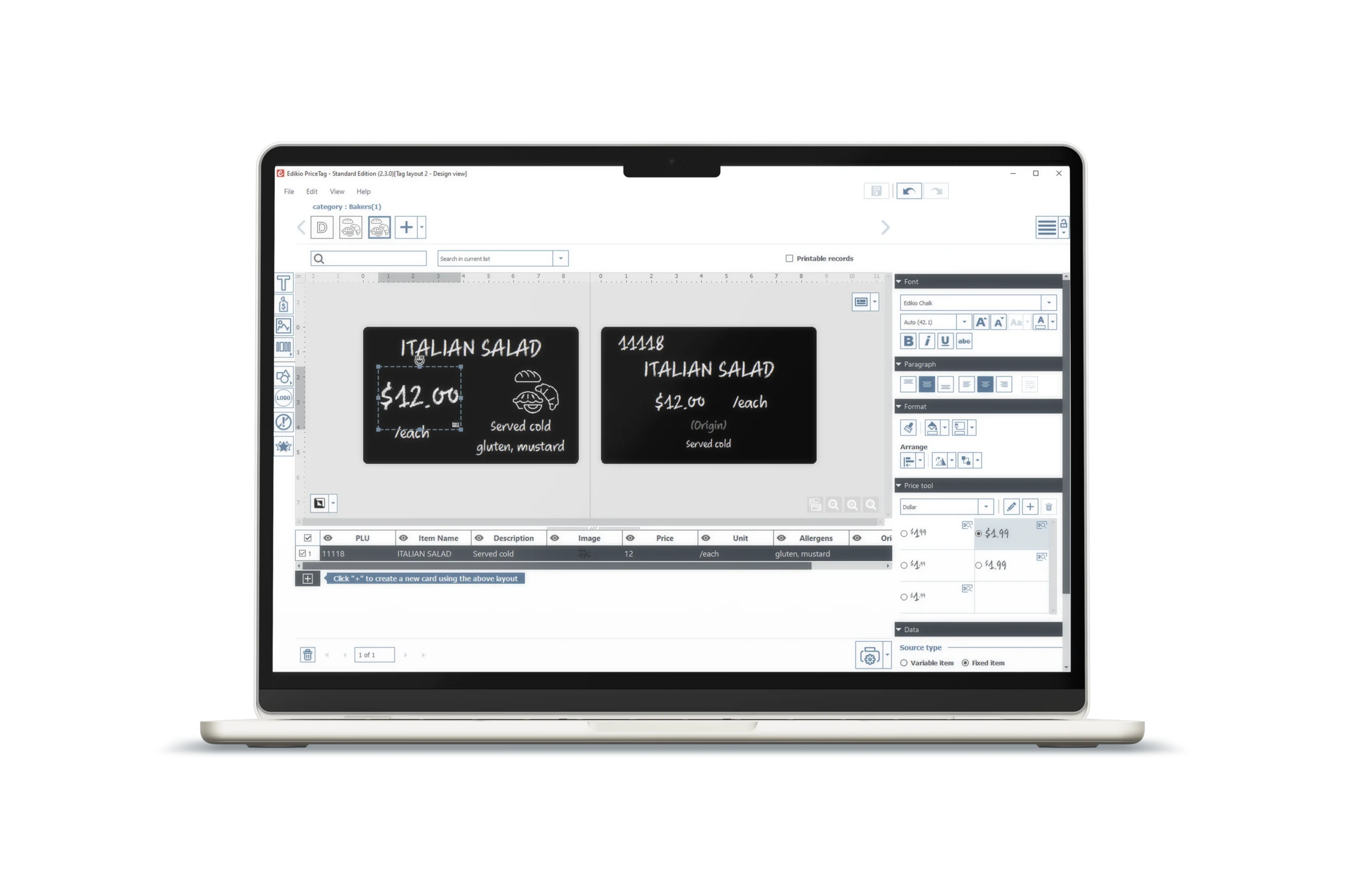 Die Lösung enthält die leistungsstarke Software Edikio Price Tag „Pro Edition“, kompatibel mit Windows® und macOS®.