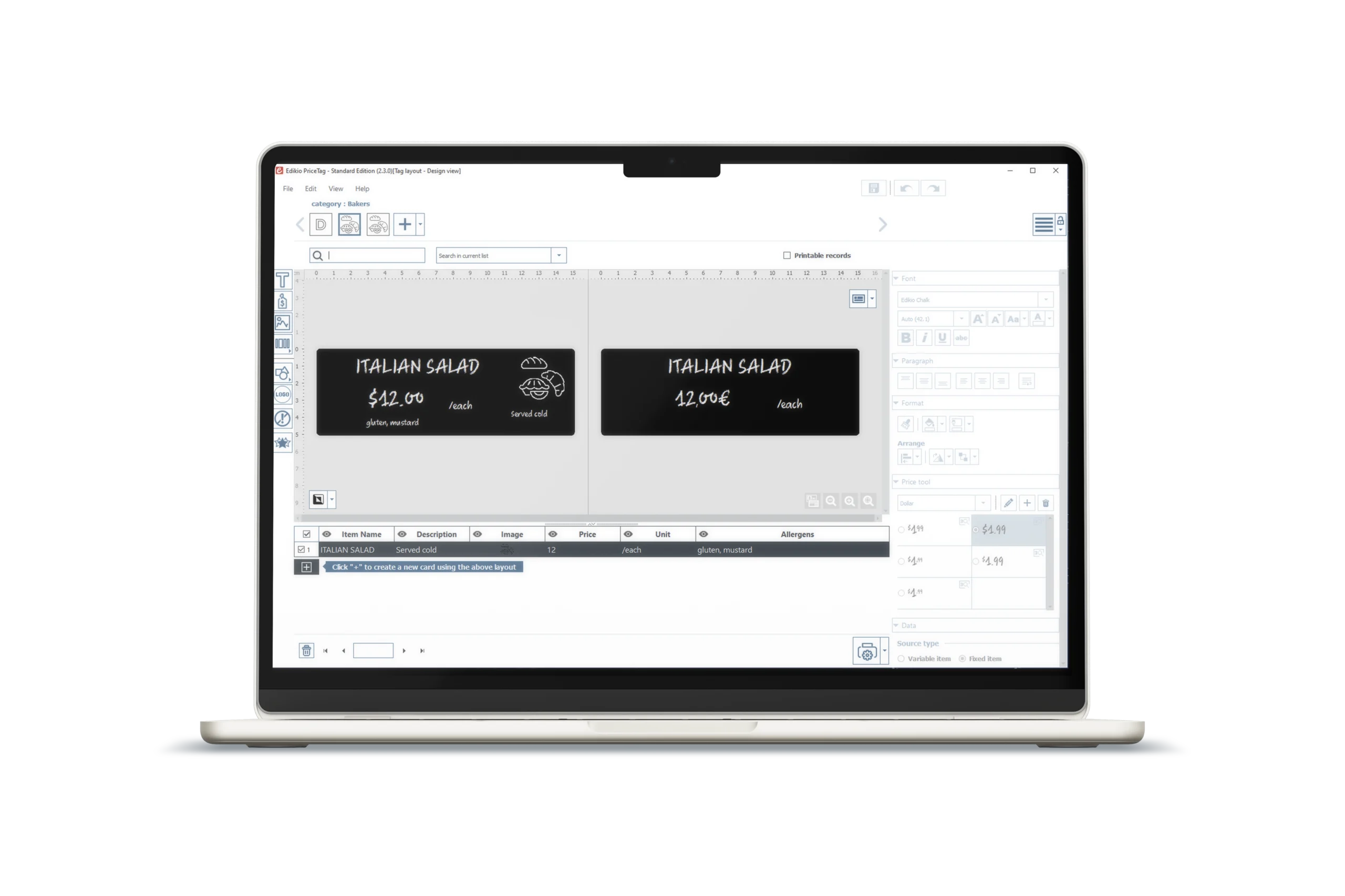 Mit Edikio Flex nutzen Sie die Funktionen der „Standard Edition“ der Edikio Price Tag Software – kompatibel mit Windows® und macOS.