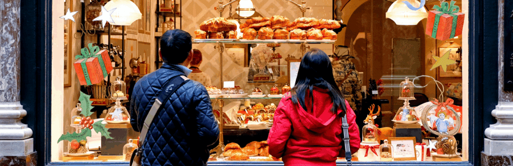 In allen Fällen, sorgen Sie dafür, dass sich die Welt Ihres Ladens schon auf der Vorderseite widerspiegelt. Sie können auch darüber nachdenken, die Welt Ihres Schaufensters je nach Jahreszeit oder den Produkten, die Sie herstellen, zu verändern, insbesondere zu Zeiten wie Halloween, Weihnachten oder Ostern. Wenn Sie die Neugier eines Passanten geweckt haben und er stehen bleibt, um sich umzusehen, ist die Wahrscheinlichkeit größer, dass er anschließend an Ihrer Bäckerei vorbeigeht!